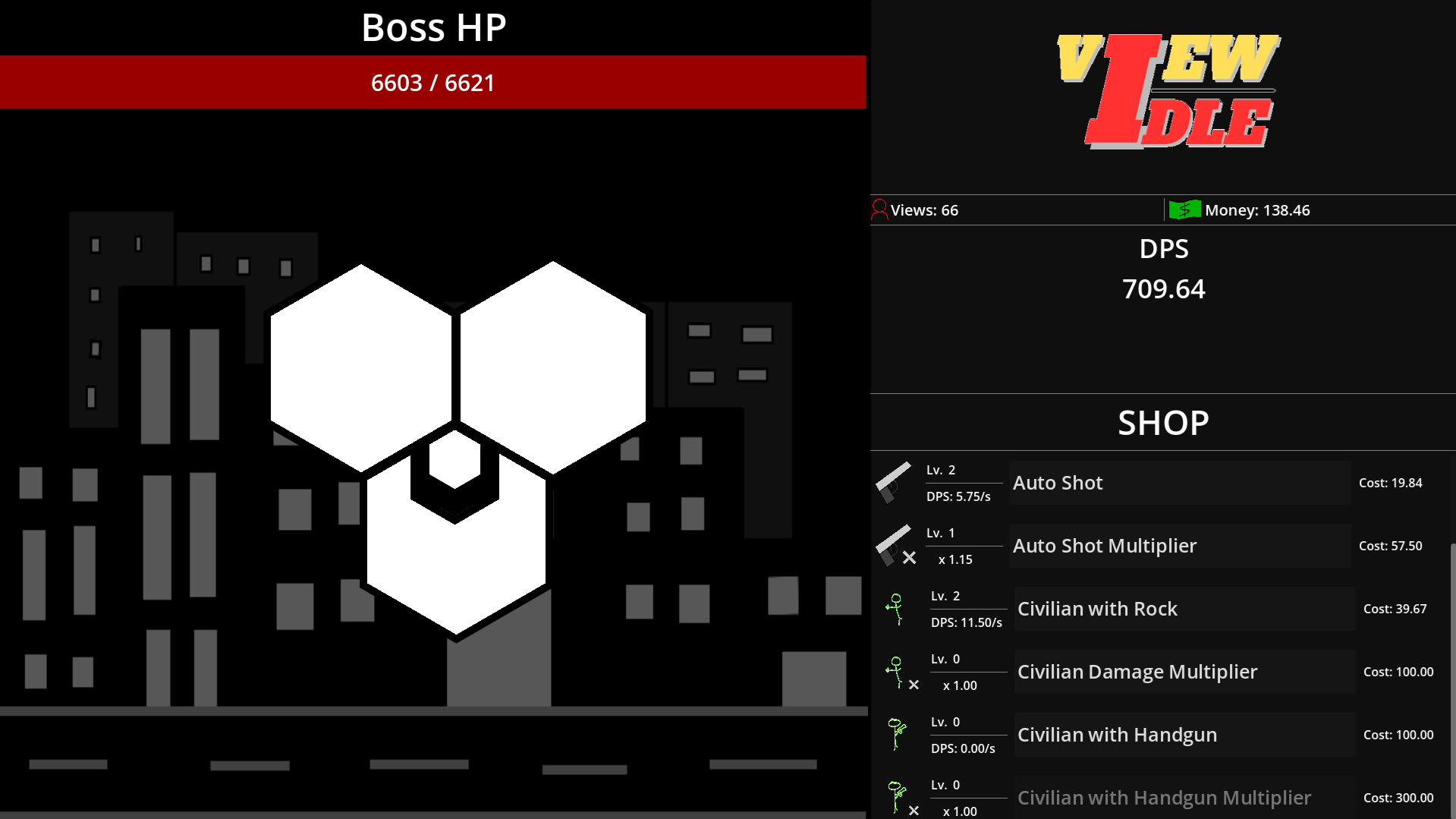 Tap, click or idle to kill the entity that has appeared in your city! Killing the entity gains you views and money that you can use to upgrade your weapons or purchase additional help!